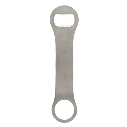 This sleek stainless steel True Blade Bottle Opener is the fastest way to pop open your favorite brew. Features a simple design with a long handle for easy opening.