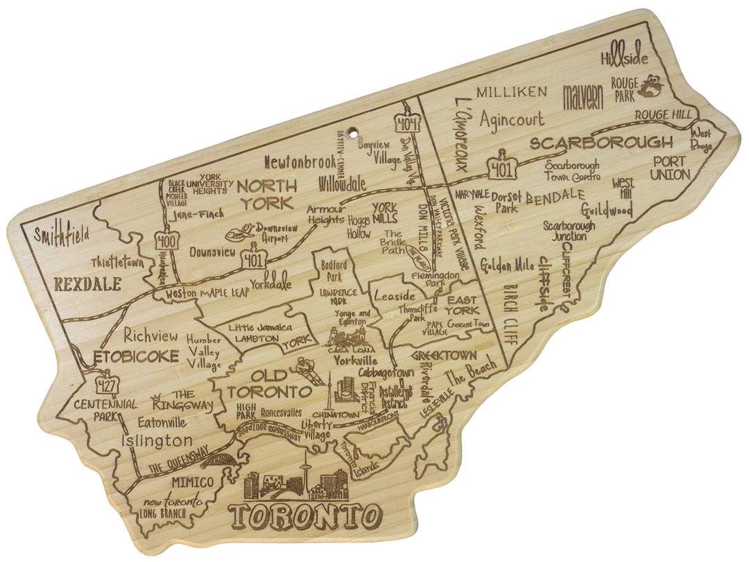 Totally Bamboo City Life Serving Board, Toronto, 100% Bamboo Board for Serving Food and Entertaining