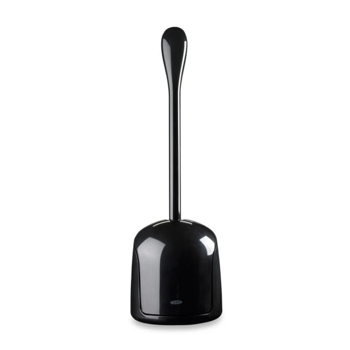 The unique canister design of this toilet brush allows it to be out of sight but easily accessed. Lift the brush and the canister door automatically opens.