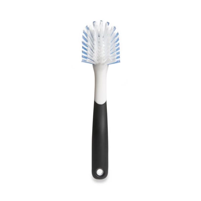 Make scrubbing pots and dishes easier with the OXO Good Grips Dish Brush. The durable, nylon bristles and built-in scraper are safe for nonstick cookware and help remove baked-on food. A soft, non-slip handle provides a secure grip, even when wet.