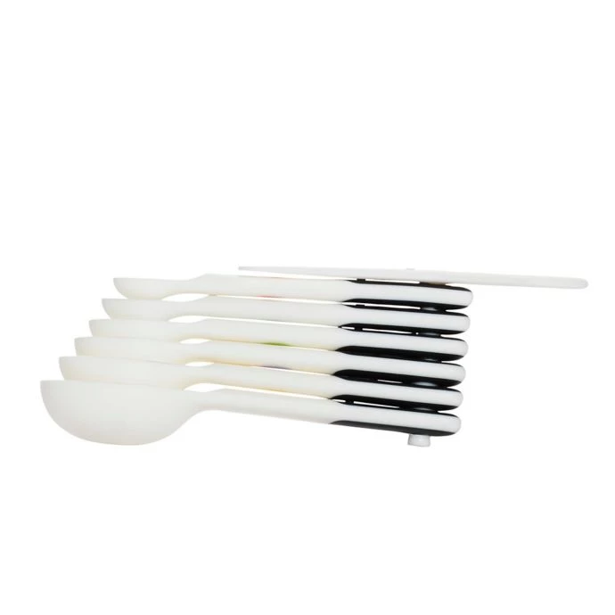 With these 7 OXO Good Grips Plastic Measuring Spoons, you can expertly and deftly get the right amount of ingredients at a moment’s notice. The spoons feature a unique snapping feature that keeps them together when stored.