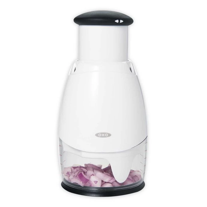 Chop onions, vegetables, herbs and more just like a professional. Just press the soft knob of this chopper and the blades will rotate for even chopping.