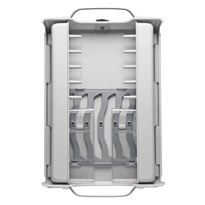 This convertible, convenient, and compact Foldaway Dish Rack from OXO Good Grips is a dynamite addition to your kitchen, giving you a dish rack that can hold plates, bowls, and even fine china neat, safe, and upright.