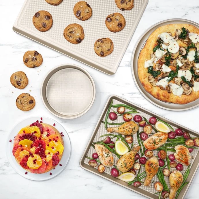 - Commercial grade bakeware distributes heat quickly and evenly for consistent results