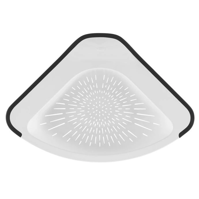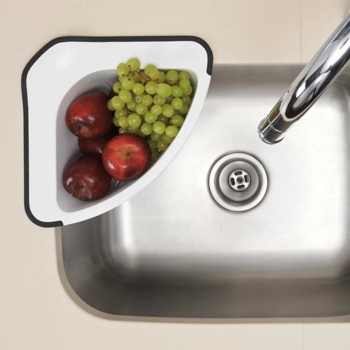 - Hangs off the sink corner for convenient, space-efficient straining