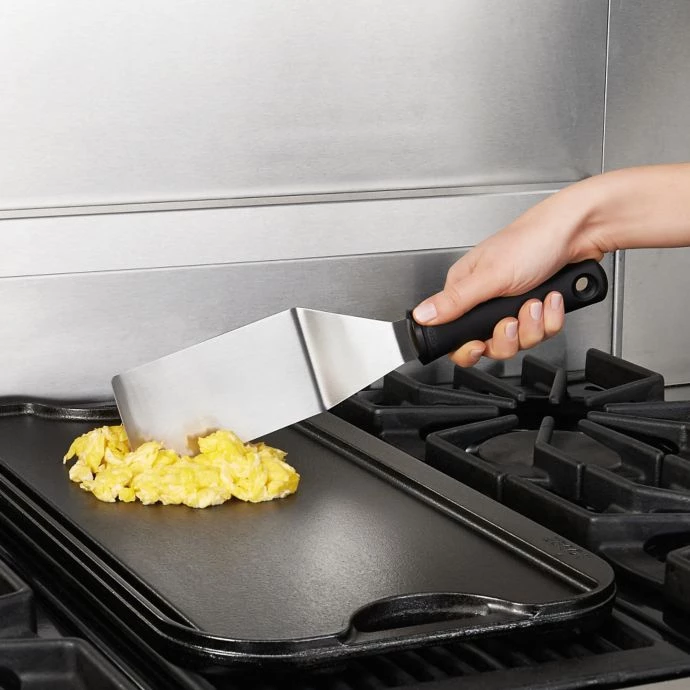 The Good Grips Restaurant Turner from OXO brings professional quality to your cooking experience. Plastic non slip handle for easy grip.