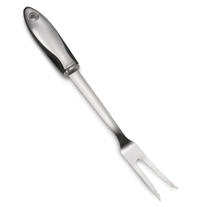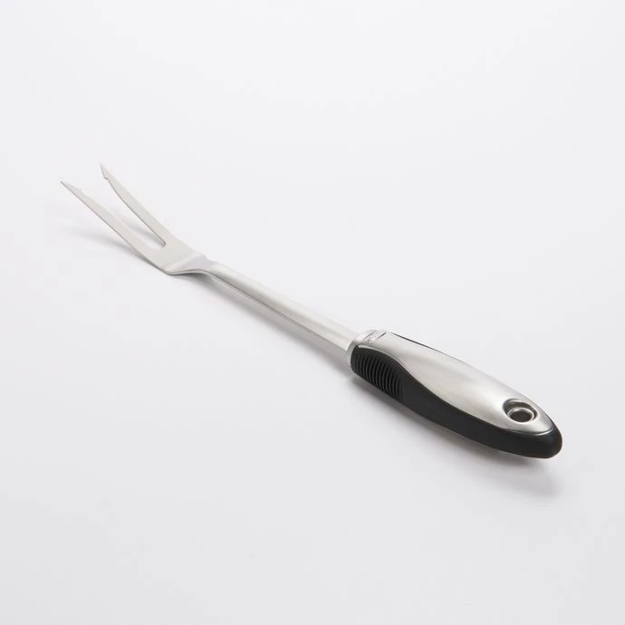 - Sleek, brushed stainless steel handle features flexible non-slip fins for comfort