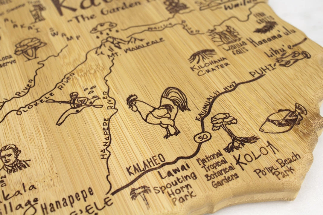 Our Destination Cutting & Serving Boards are laser engraved with iconic points of interest, cities, historic landmarks and wonderful roadside attractions, reminding us of the places we love and the places we hope to visit.