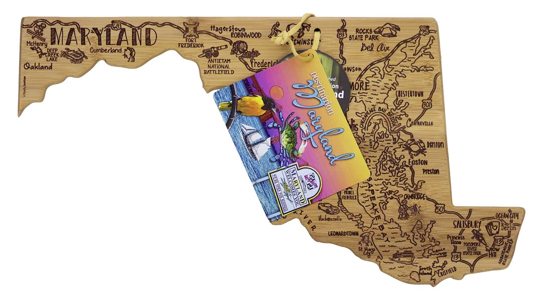 Destination Maryland measures 18″ x 9-5/8″ x 5/8″