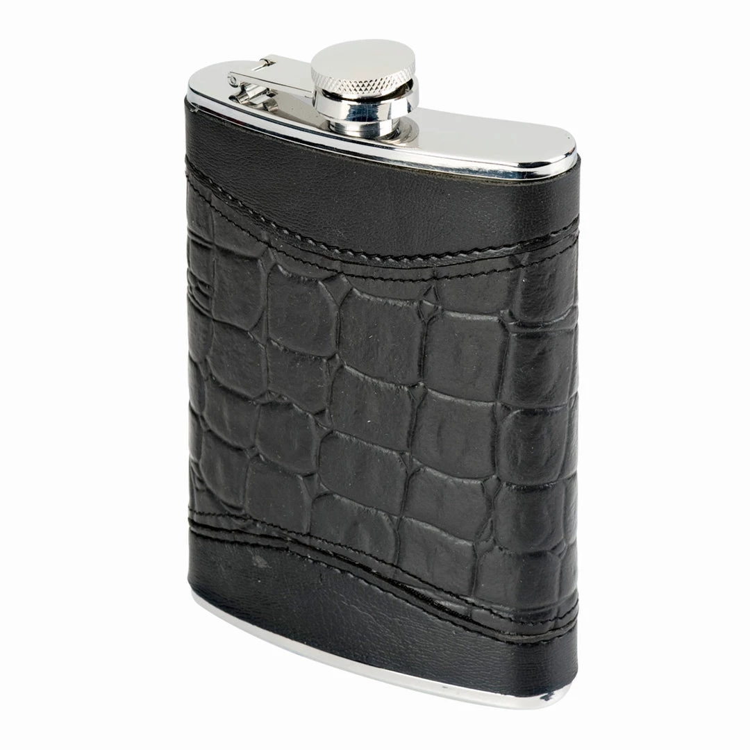 The Oenophilia Black Alligator Flask is great for football games, parties, and just plain fun, this Oenophilia Flask features stainless steel construction with captive top, and is wrapped in a black faux leather alligator material. The Oenophilia Black Alligator Flask holds 8 ounces and makes a great gift.
