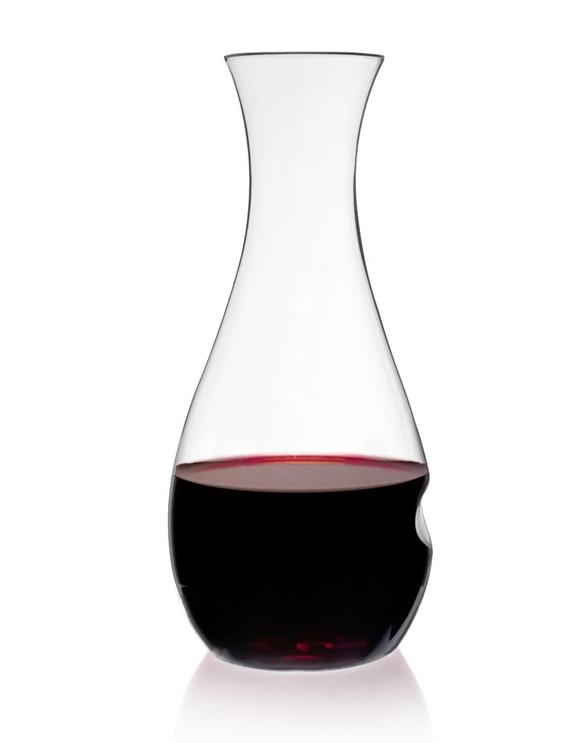 Freedom for your wine! govino’s new dishwasher-safe 28 ounce. Decanter allows you to aerate and serve all types of wine in virtually any setting. Its patented thumb-notch, and drip-free spout provide a secure grip while pouring.