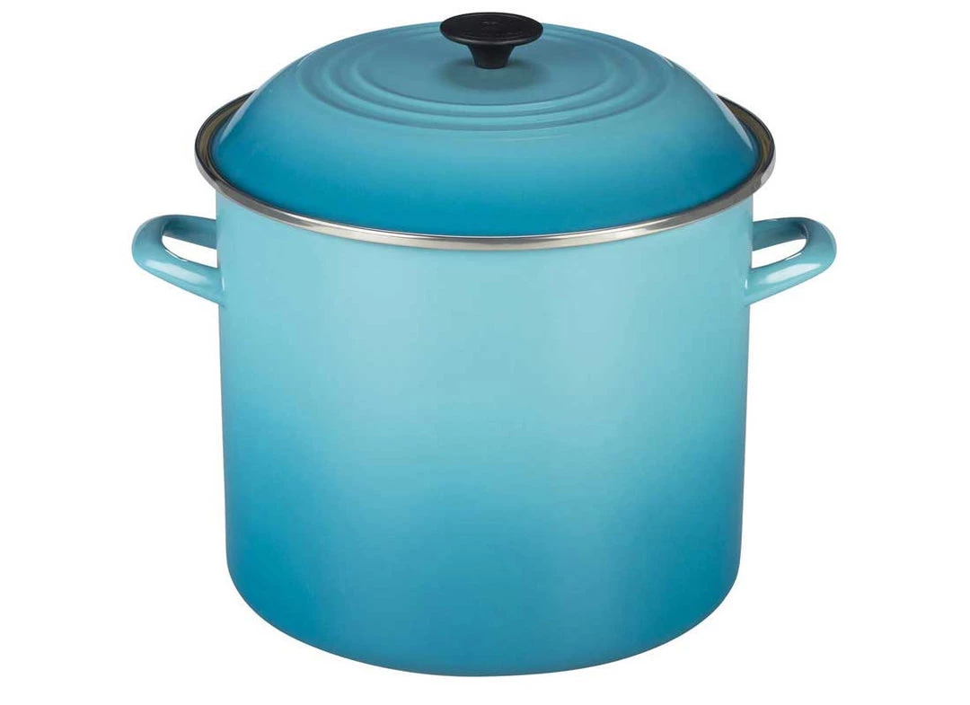 Le Creuset enamel on steel stockpots are finished in the same bold palette of signature colors as Le Creuset enameled cast iron, making them perfectly stylish complements to any combination of cookware.