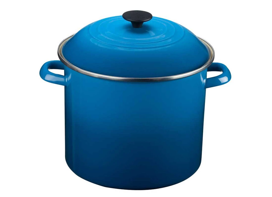 Le Creuset enamel on steel stockpots are finished in the same bold palette of signature colors as Le Creuset enameled cast iron, making them perfectly stylish complements to any combination of cookware.