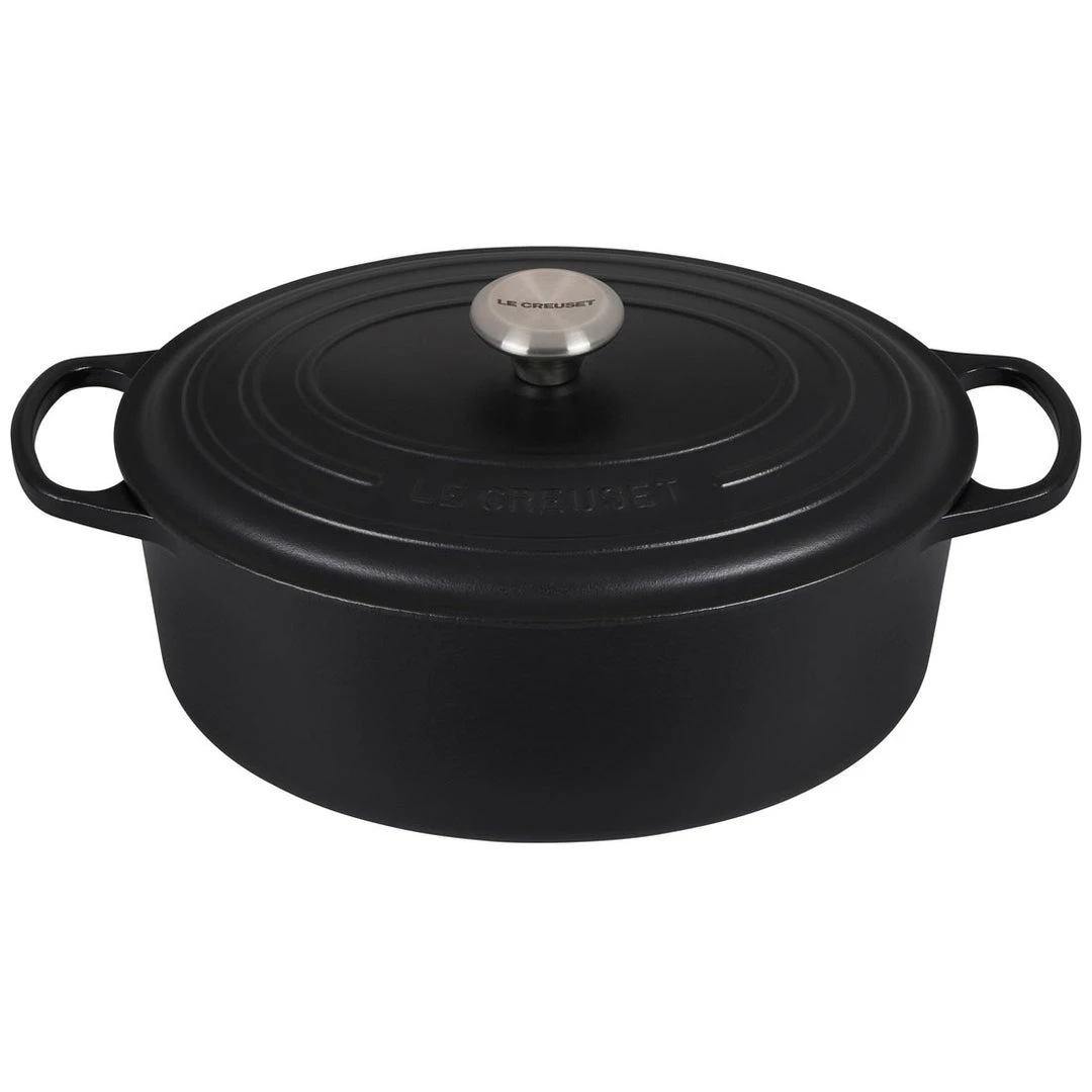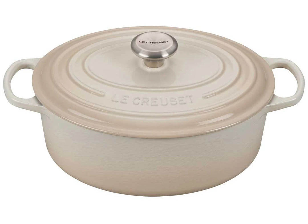 The iconic Le Creuset oval Dutch oven is indispensable in the kitchens of home cooks and professional chefs alike. Long recognized for its strength and durability, cast iron is the prime material for slow-cooking, braising and roasting, thanks to its ability to maintain even and consistent heat. The enameled oval Dutch oven needs no seasoning, and it’s suitable for both stovetop and oven use. The oval shape is particularly suited to longer cuts of meat or poultry.