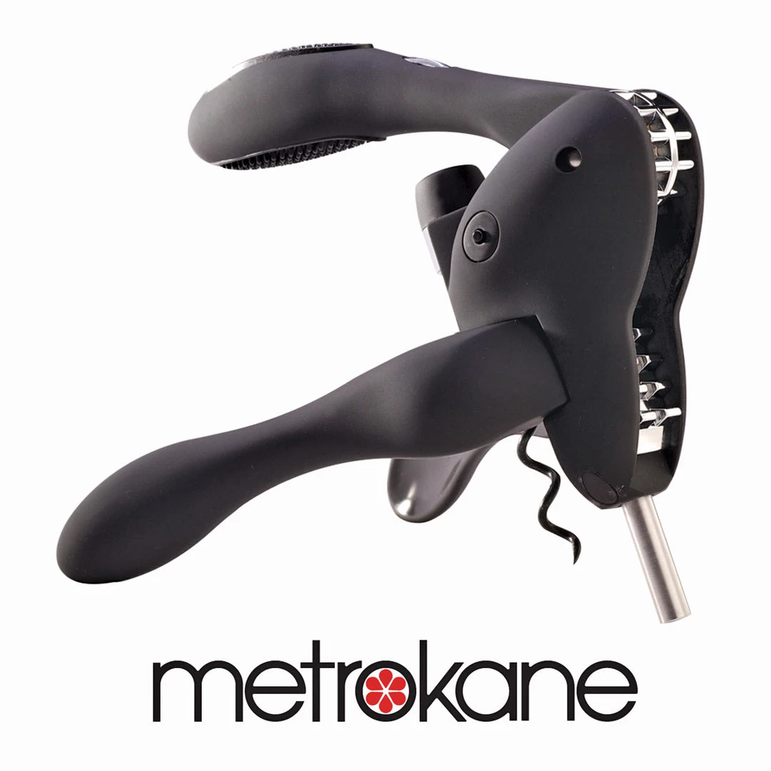 The redesigned metal gear mechanism of the Metrokane Rabbit Corkscrew gives it an even smoother operation. The Metrokane Rabbit Corkscrew will pull a cork in three seconds flat and will even eject the cork from the worm after it’s pulled. With a black ergonomic design and soft rubber grip pads, the Metrokane Rabbit Corkscrew is used by professionals, but will fit well in any home bar. This Metrokane Rabbit Corkscrew comes with a free Metrokane Foil Cutter.