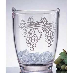 With it’s elegant thick wall and grape cluster design, this exquisite crystal clear wine bucket will impress all, whether it be a formal indoor setting or casual outdoor entertainment. The Acrylic Wine Bucket w/ Grape Cluster Design is made from durable crystal clear acrylic and features an elegant embossed grape cluster design. Acrylic Wine Bucket with Grape Cluster Design measures 7 1/2″ D x 9 1/2″ H.