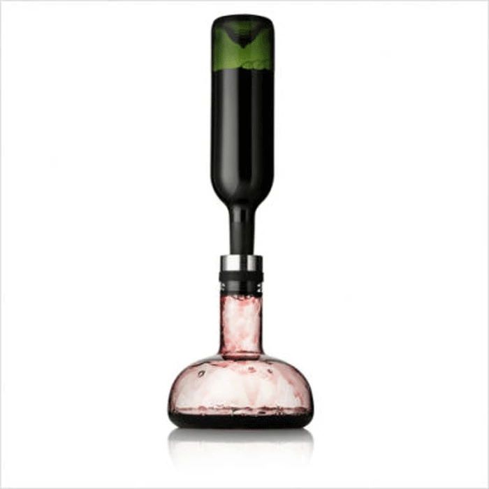This elegantly designed Menu Winebreather Carafe aerates your wine in one easy step. Simply press the Menu Winebreather Carafe onto the top of an opened bottle of wine and flip it over so that the wine pours into the decanter. You can serve the wine from the Menu Winebreather Carafe, or flip it back over once it’s done and pour the aerated wine back into the bottle and serve from the original bottle. Menu shortens wine aeration time down to 2 minutes with their new Wine Breather Carafe that you simply pop onto your favorite red, flip it upside down, and you’ve got a properly aerated bottle of vino that can be served in the decanter or in the original bottle.