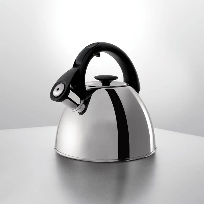Attractive, durable and stain resistant, these tea kettles alert you with a loud whistle when water has come to a roiling boil and come equipped with a convenient spout-opening trigger mechanism on the oversized handle.
