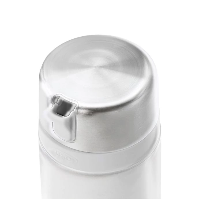 Adding convenience plus the look of a retro-modern diner to your kitchen or table, this Glass Sugar Dispenser from OXO features a clear glass body and sleek stainless steel lid. The easy-open spout allows controlled pouring.