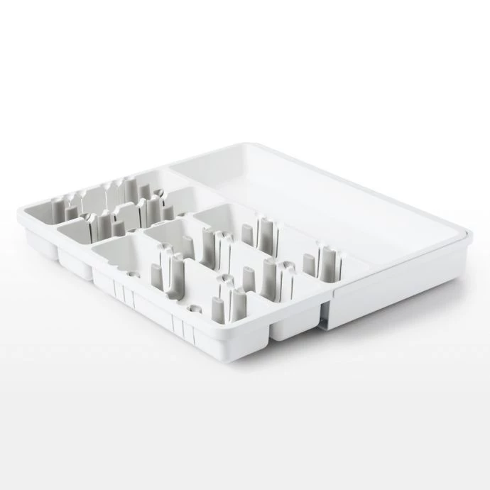 Keep utensils neat and tidy in a drawer by using the Expandable Utensil Organizer from OXO Good Grips. The adjustable dividers allow for stacking utensils in opposite directions. To move, just pinch the side walls and slide in or out.