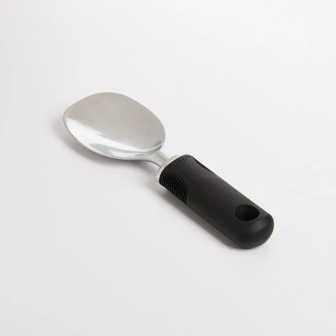 - OXO’s Ice Cream Spade has a flat, wide blade to scoop ice cream with ease and a cushioned non-slip handle that makes it as comfortable as it is easy to use