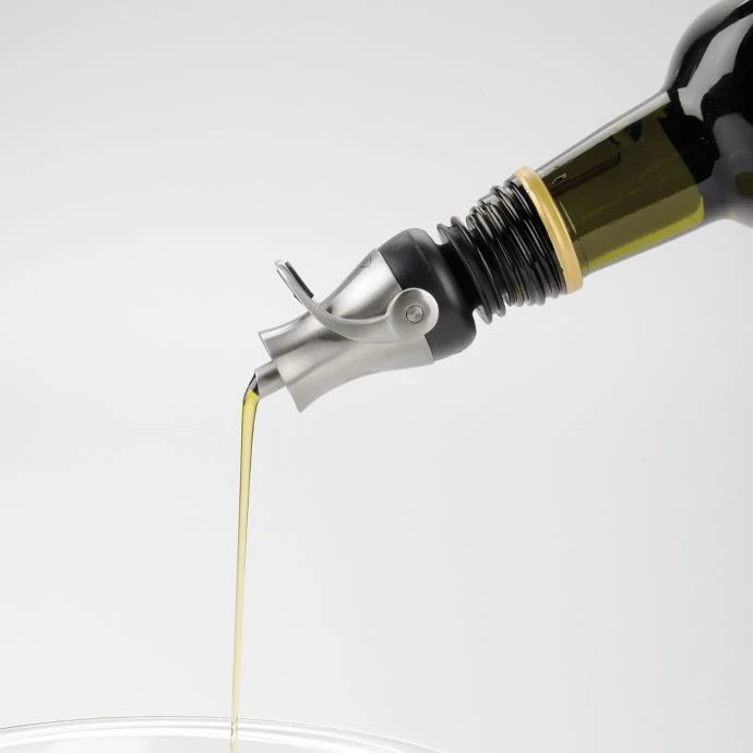 This stopper/pourer, made of durable stainless steel, fits most size bottles. Its dual function seals for storage and opens for drip-free pouring.