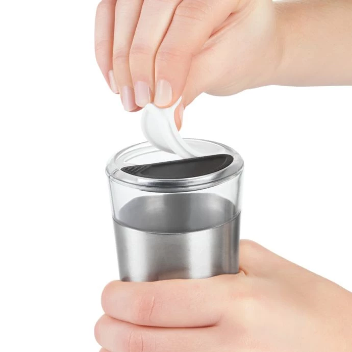Smooth yet polished, this perfect salt and pepper shaker by Oxo is a must have for your room.