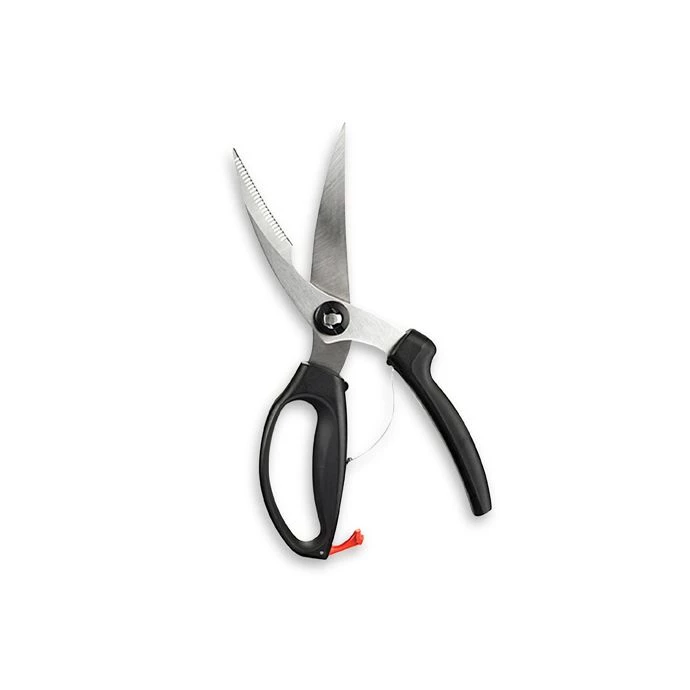 OXO Poultry Shears with a micro-serrated blade are a must-have for your kitchen. Its spring loaded soft grip handle prevents hand strain and the handle loop and bolster prevent hand from slipping forward.
