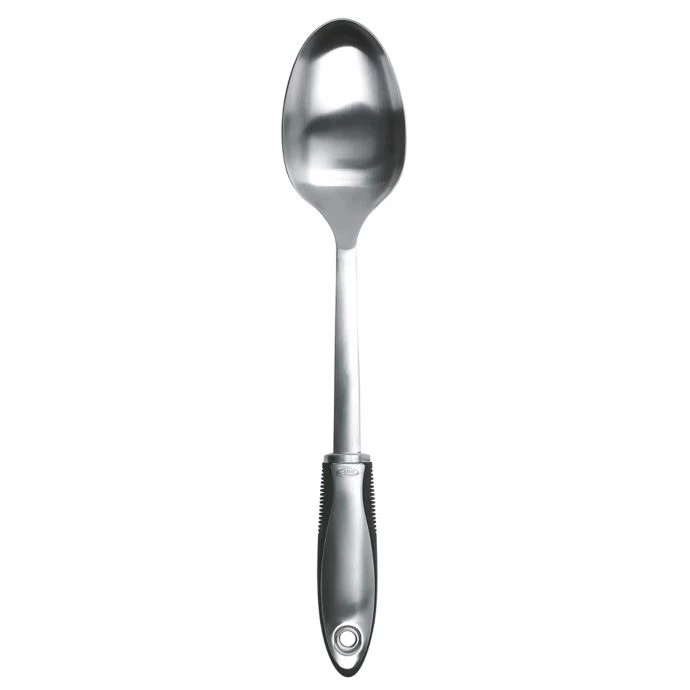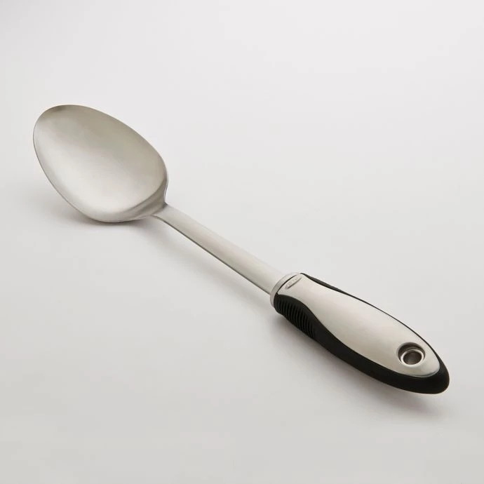 The brushed stainless steel handle features Santoprene fins for superior grip and comfort. Brushed stainless steel head is sturdy and durable, to serve you well for a lifetime of use.