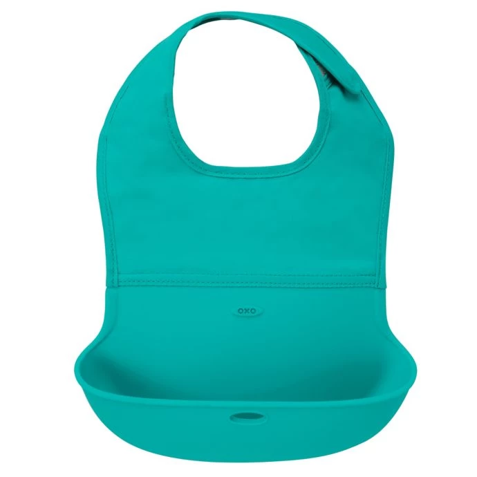 Make mealtime messes manageable with the OXO Tot Roll Up Bibs. Soft, food-safe pocket on these cute, innovative bibs are wide enough to catch virtually any piece of food that miss or come out of baby’s mouth to help keep outfits clean and tidy.