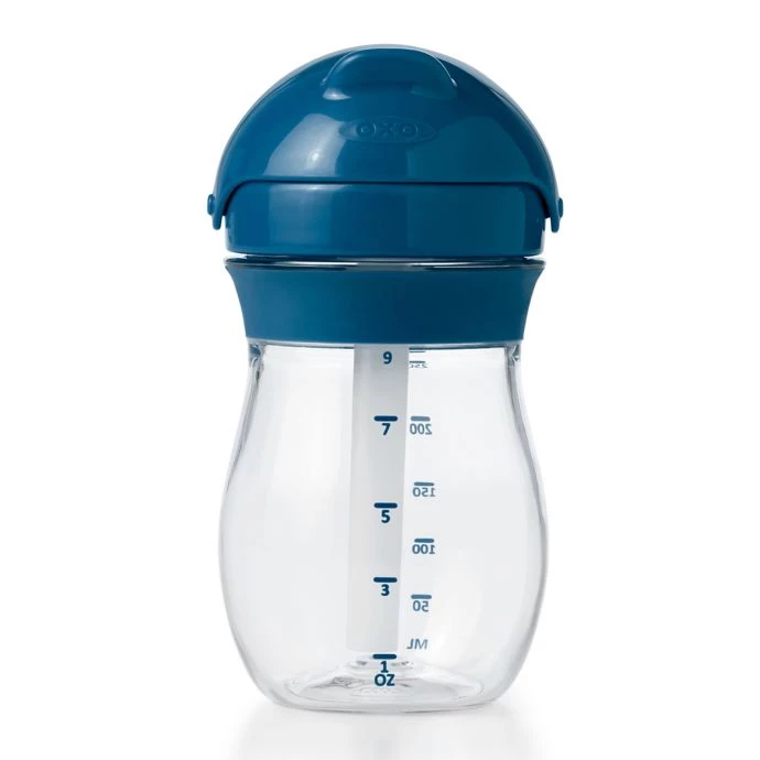 Designed to conform to your toddler’s mouth, the OXO Tot Transition Straw Cup helps children transition from bottle, breast, and sippy cups. The straw valve activates when baby’s lips touch the spout, and the hinged cap seals securely.