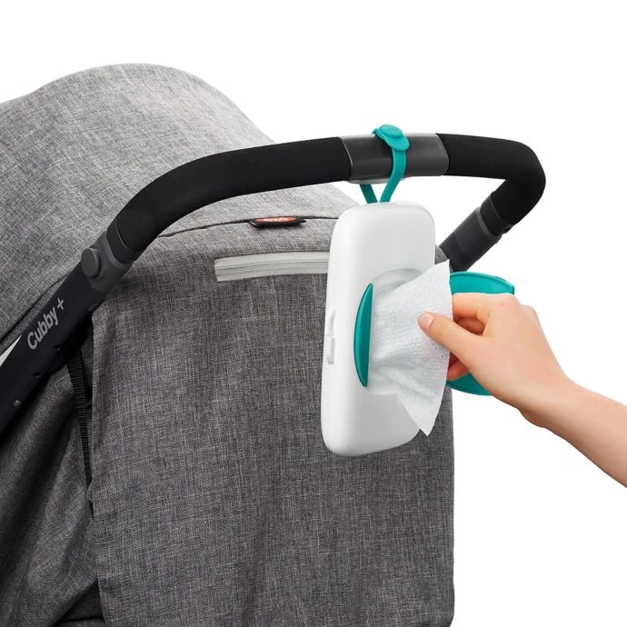 Shaped to tuck easily into diaper bags, handbags, or strollers, the OXO tot On-the-Go Wipes Dispenser is a must-have item when traveling with children. The container has a large button for 1-handed operation. Keeps up to 25 wipes moist at a time.