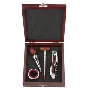 This elegant boxed gift set includes the Majestic Chateau waiter style corkscrew, wine thermometer, stainless steel & wood bottle stopper and stainless steel leak proof ring. The set is presented in an exquisite cherry wood gift presentation and storage box.