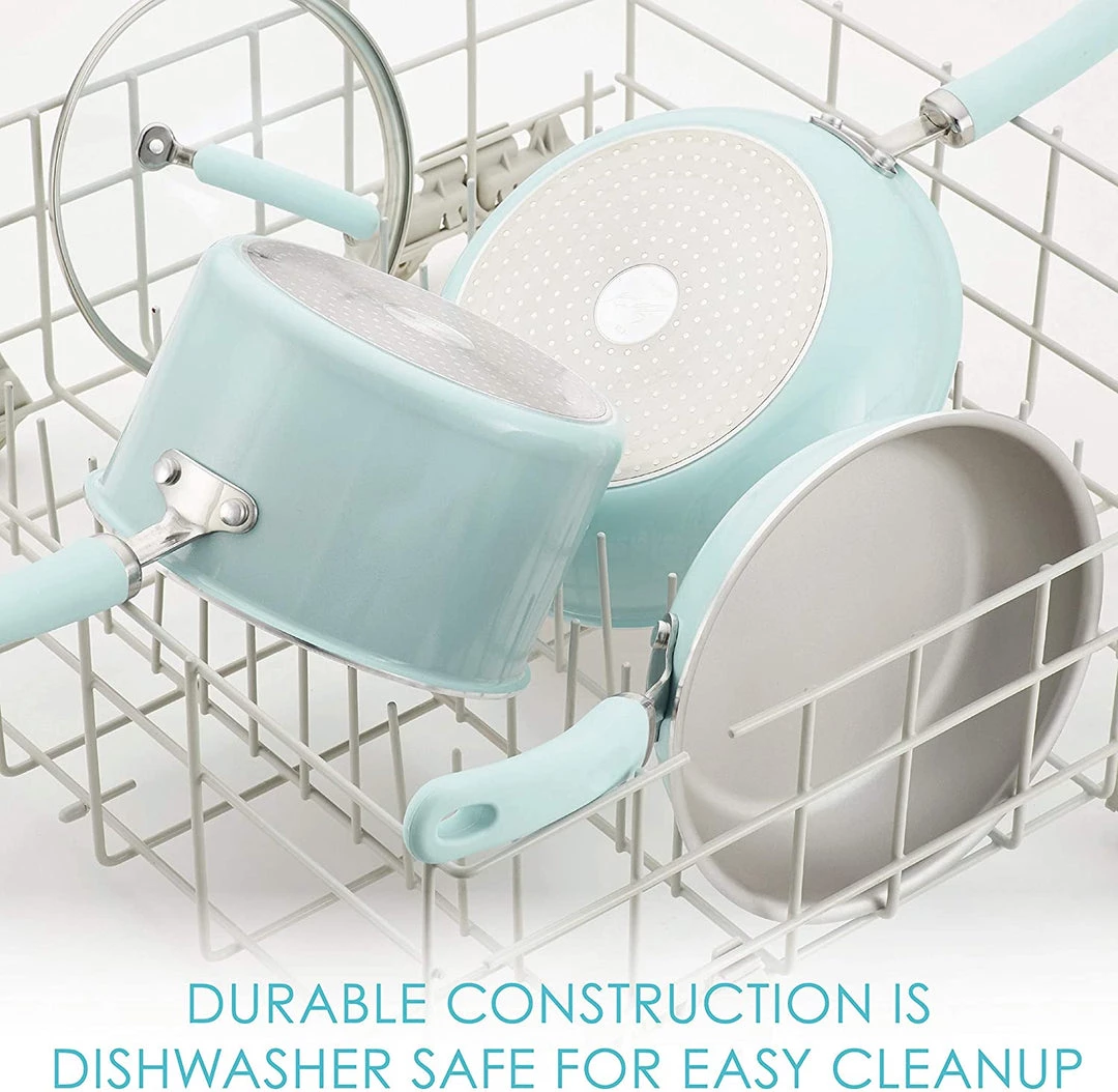 Radiant and solution-oriented, the Rachael Ray Create Delicious 9.5-Inch Aluminum Nonstick Deep Frying Pan brings high-performance and easy convenience to an essential pan made even more versatile with a deeper design. Featuring vibrant, shimmering color combined with value-driven functionality, this indispensable fry pan brings on Rachael’s always-reliable performance with durable aluminum construction for ultra-even heating and browning. Made with higher sides for an enhanced cooking surface, this smart skillet features PlatinumShield(tm) Technology silver nonstick reinforced to be 9X harder than titanium.