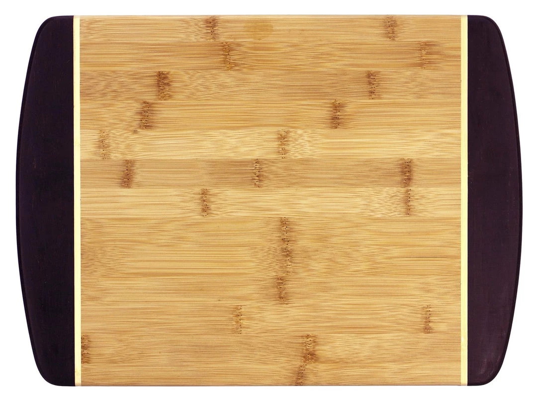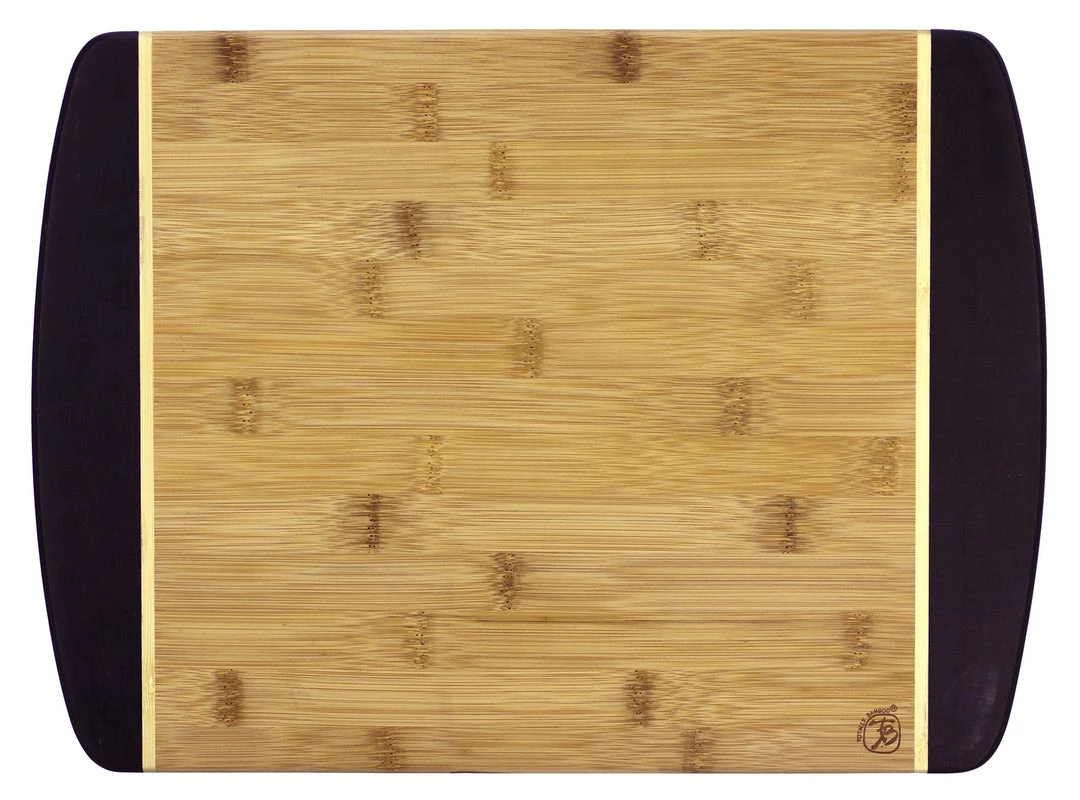 Our Java cutting boards are based on the original Hawaiian collection, but in reverse. Dark crushed bamboo end caps frame the flat grain body of the board, and light inlay stripes add the finishing touch. The various colors are created by steaming the bamboo, which caramelizes the sugars and darkens the wood. This natural process means there are no stains or dyes to wear or wash off, keeping these boards looking beautiful for years to come.