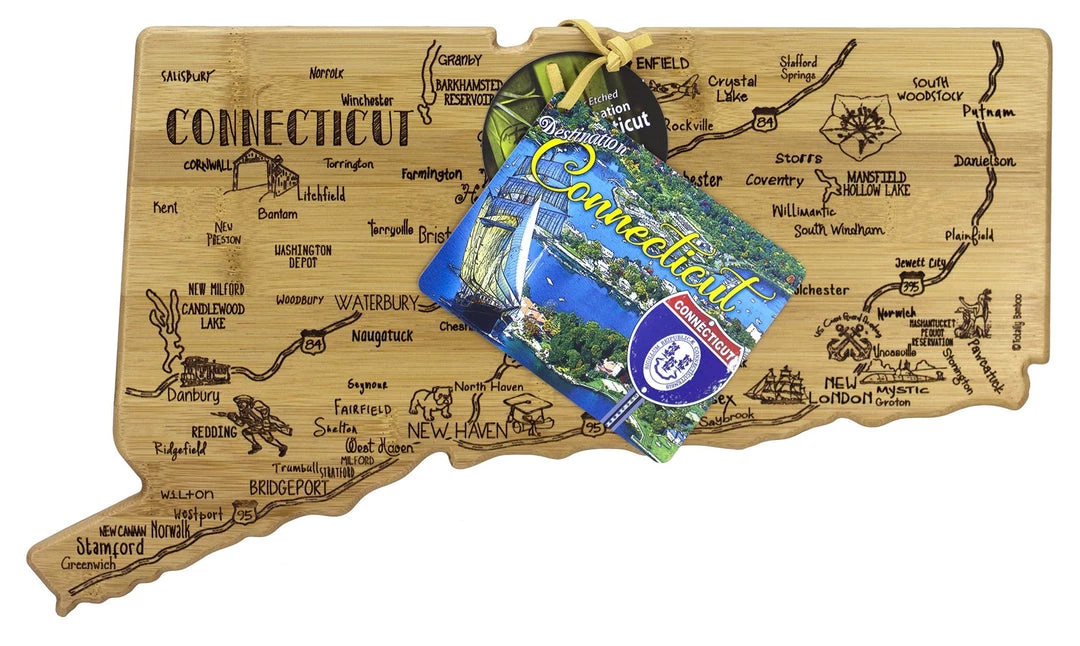 Destination Connecticut measures 16-1/2″ x 9-1/2″ x 5/8″