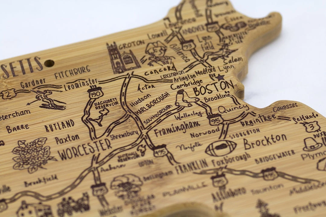 Our Destination Cutting & Serving Boards are laser engraved with iconic points of interest, cities, historic landmarks and wonderful roadside attractions, reminding us of the places we love and the places we hope to visit.