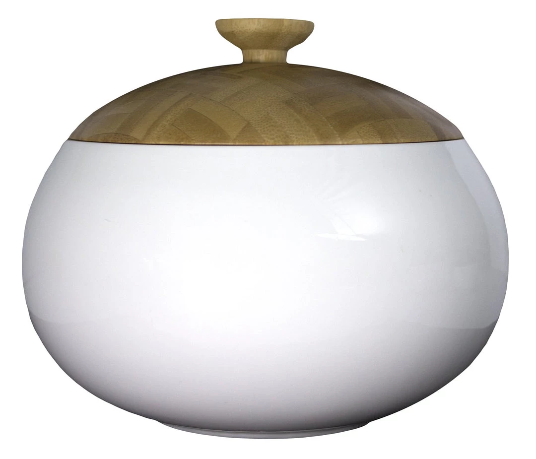 Our large ceramic canister with end grain bamboo lid holds 6 cups. Air tight silicone seal helps maintain freshness.