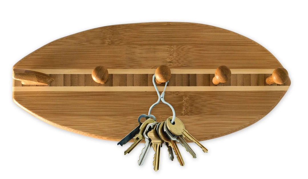 Get stoked (and never lose your keys again) with our surfboard-shaped key rack. It’s crafted from beautiful, organically grown bamboo with double keyhole slots on the back that make hanging a breeze.
