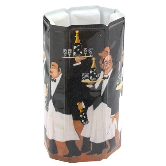 Rapid Ice wine coolers from Vacu-Vin Serve chilled Champagne at a moment’s notice. Store Rapid Ice in your freezer, slip it over the bottle for 5 minutes, et voila! it’s ready to drink. Rapid Ice keeps drinks ice cold for up to 3 hours without messy ice. The Guy Buffet version. Acclaimed American artist Guy Buffet dresses up Rapid Ice with a gaggle of garcons from The Charge of the Bottle Brigade.