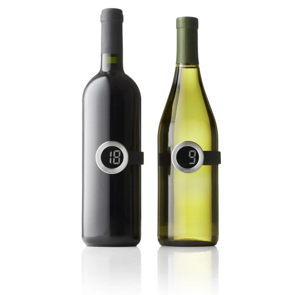 Take the temperature of your wine and get the most from the taste. The wine thermometer only need be attached like a belt around the bottle, and within minutes you can read the temperature on the digital display. The thermometer can withstand being dropped and even survive the loving attentions of the youngest in the family, and it fits easily into a drawer, on a tray or on your kitchen shelves, so it’s always there when you need it. Cheers! À votre santé! The face is Stainless Steel and the body is plastic. Designer Jakob Wagner has won the Red Dot Design Award, IF Design Award, and Good Design Award for this clean and functional thermometer.